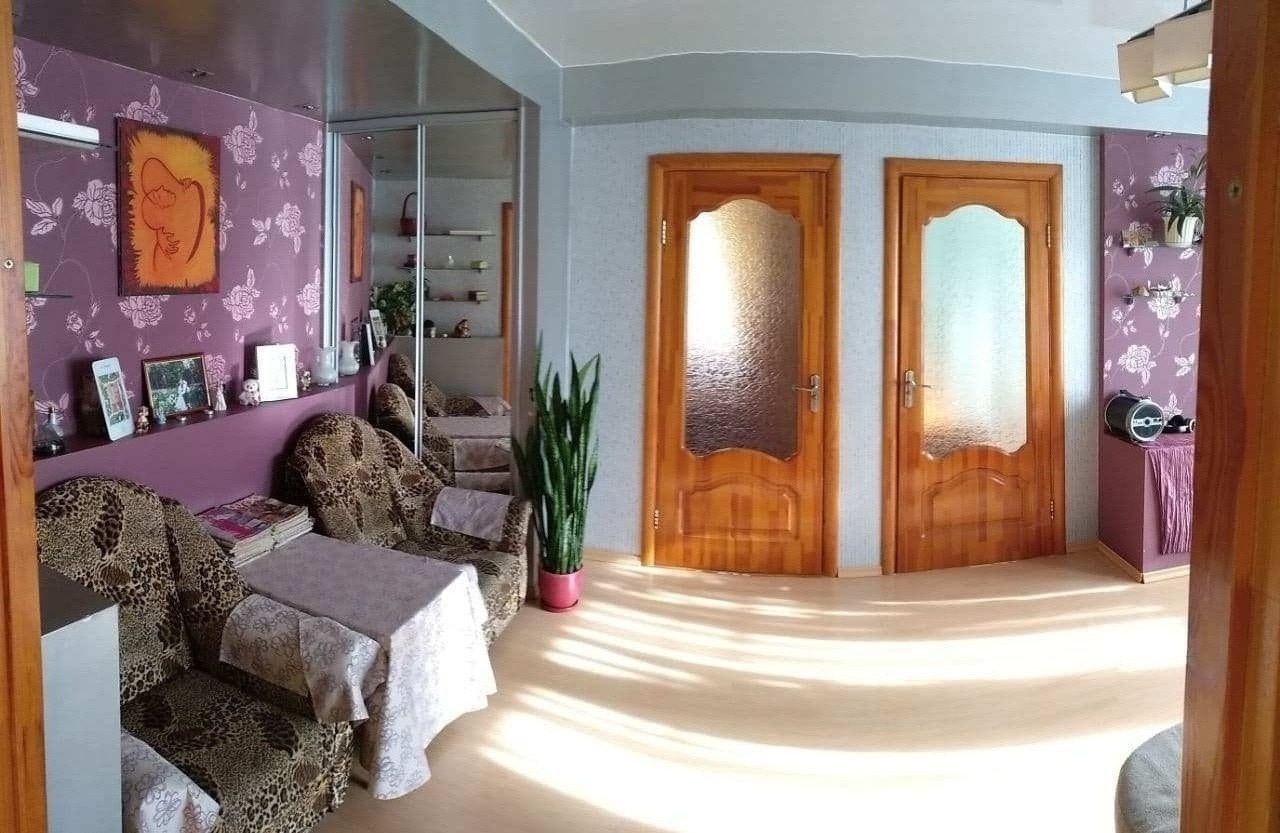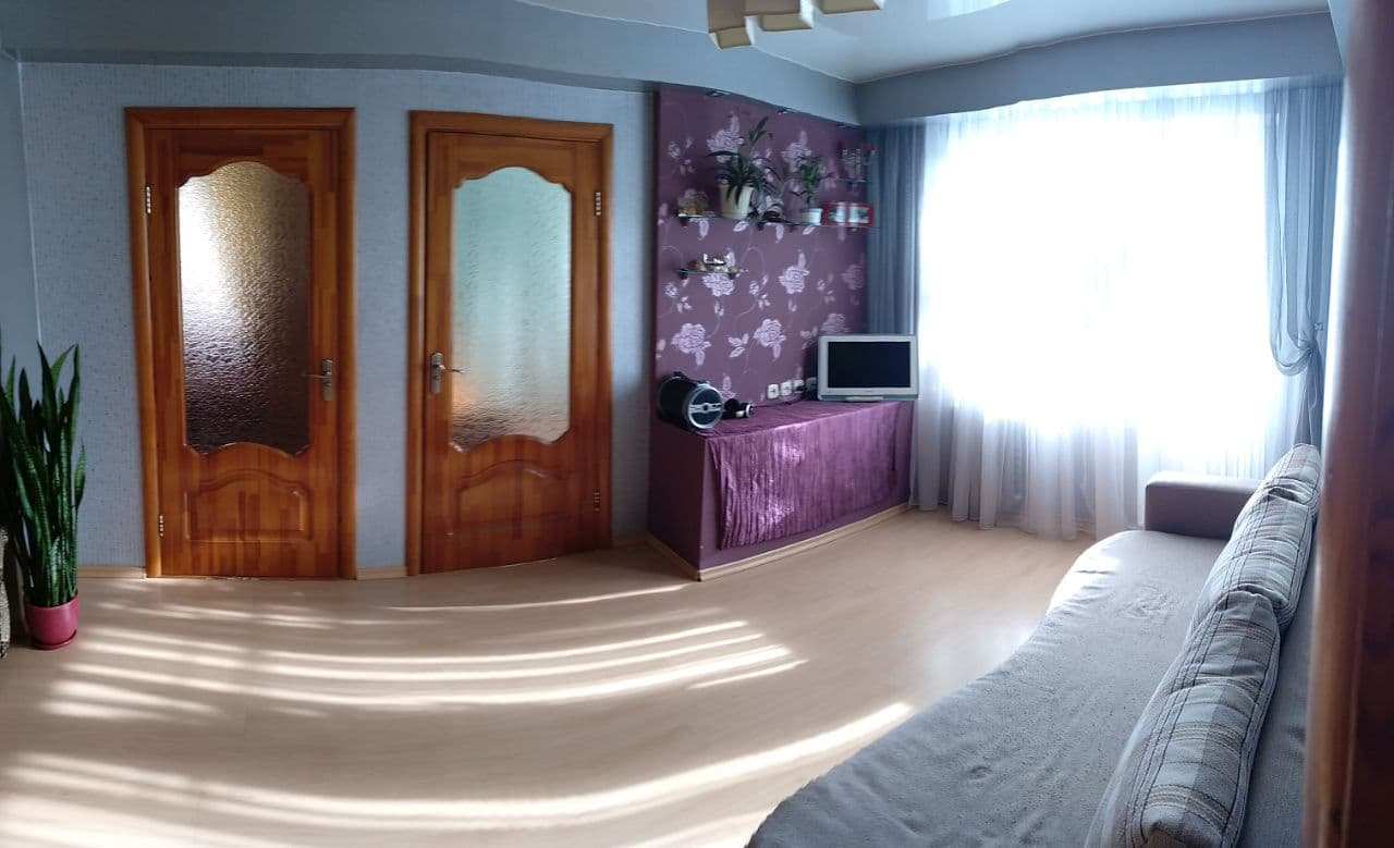 Продается квартира практически в самом центре города. Расположение – лучше не бывает! Все что нужно для комфортного проживания в пешей доступности. Детский сад прямо во дворе, рядом школы, гимназия, бассейн, городской парк, стадион и спортивный комплекс "Юность", больница и поликлиника (лучше чтобы не понадобились). В пяти минутах расположены продовольственные, промтоварные и хозяйственные магазины, аптека, а также супермаркет "Мартин". Подъезд первый, вдалеке от шумной трассы. Комфортный третий этаж. В квартире сделана перепланировка, где кухня совмещена с соседней комнатой, что позволяет сделать там просторную столовую. Имеются встроенные шкафы купе в прихожей и в гостиной. Планировка квартиры позволяет комфортно проживать семье с детьми – родительскую и детские спальни разделяет просторная гостиная. Балкон застеклён, рамы раздвижные. В целом необходим косметический ремонт, однако состояние квартиры хорошее.