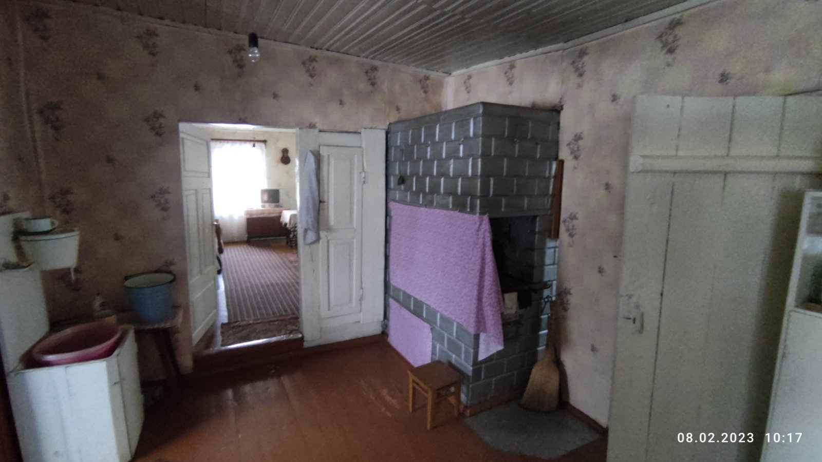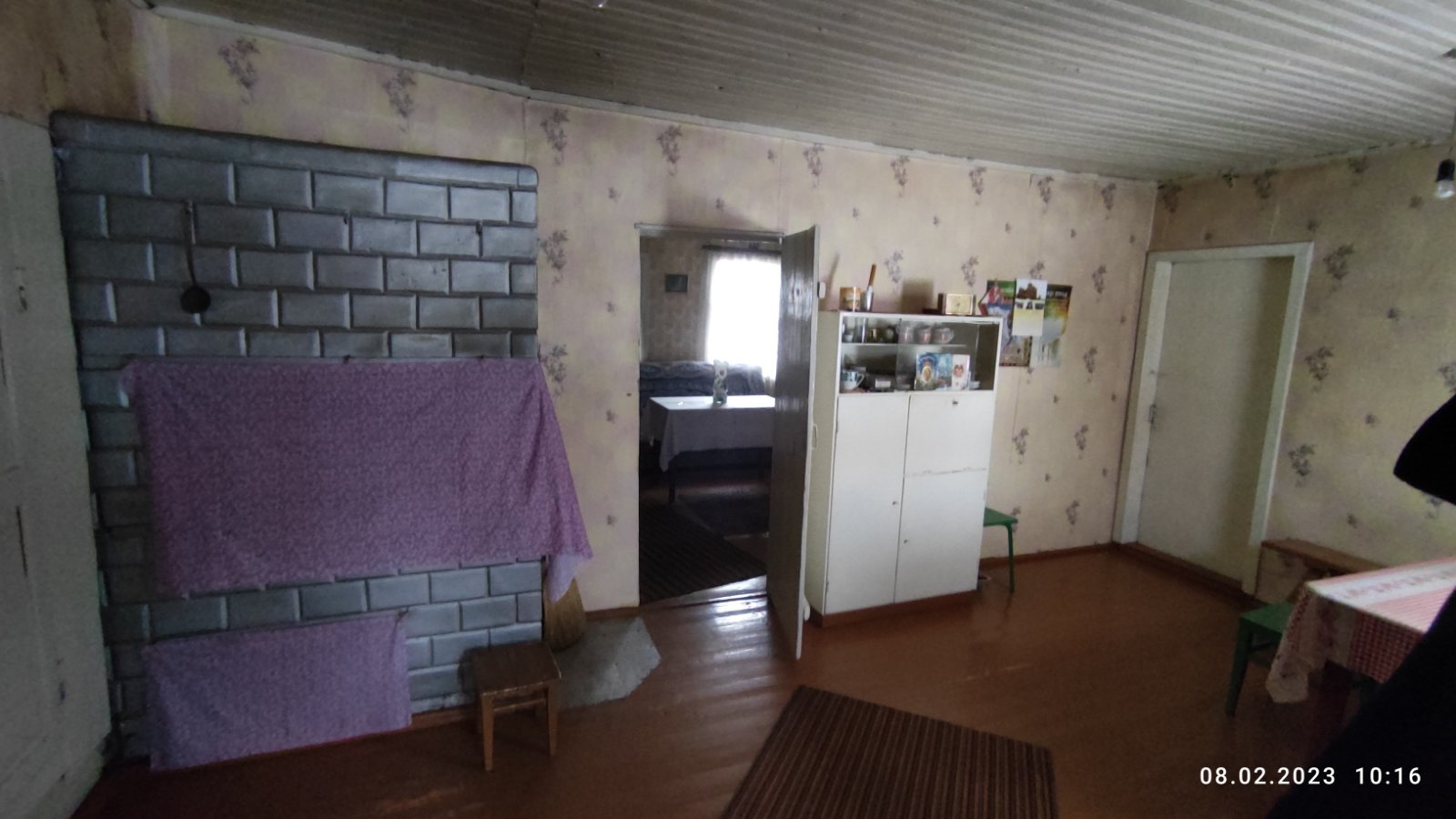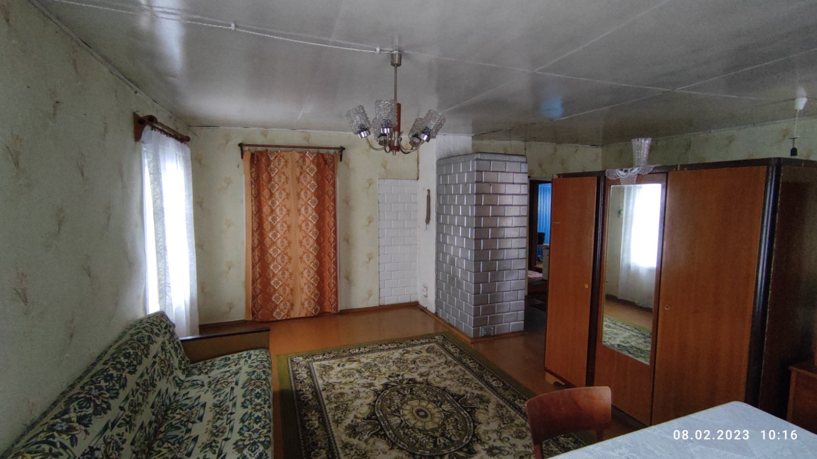 Крепкий дощатый пол, высокий потолок, две добротные рабочие печи (плита с "лежанкой" и "голландка").
