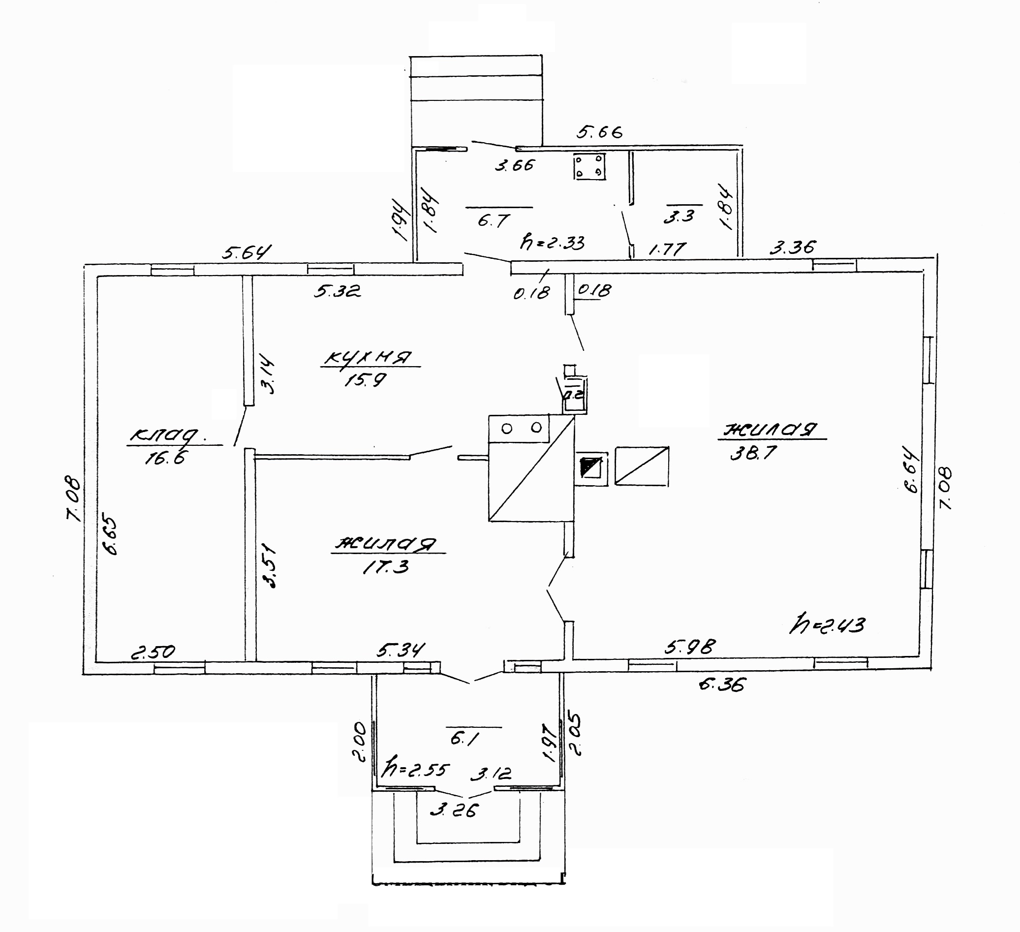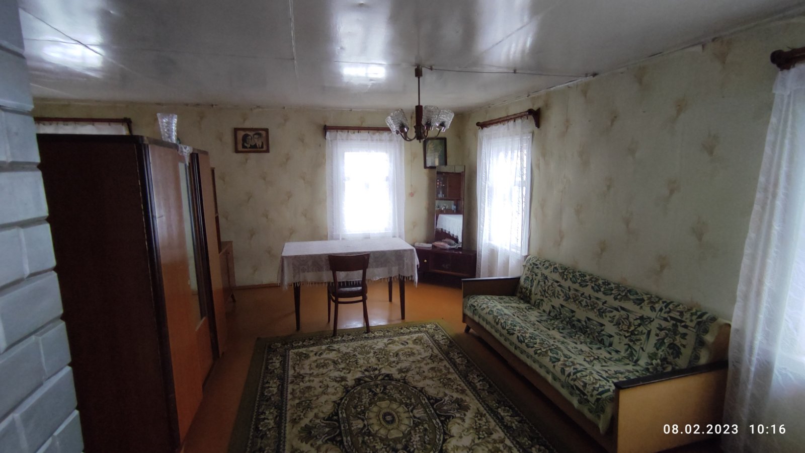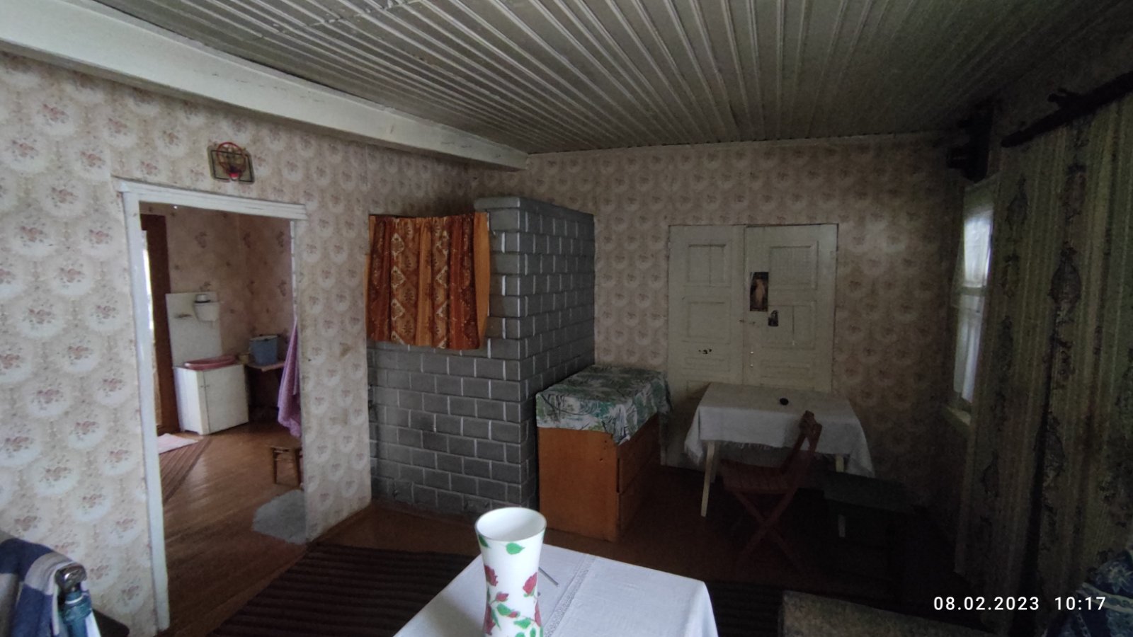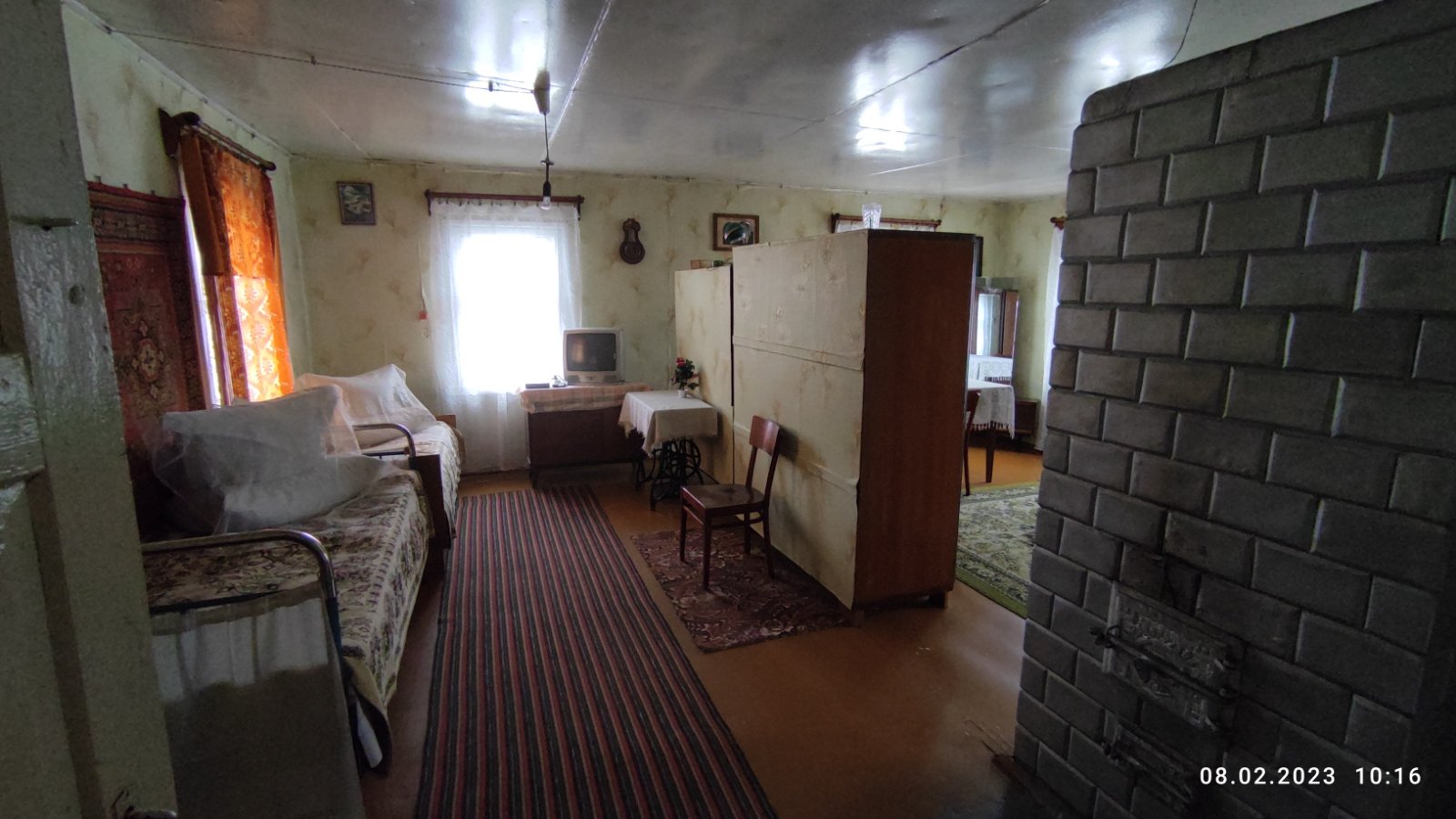Крепкий дощатый пол, высокий потолок, две добротные рабочие печи (плита с "лежанкой" и "голландка").