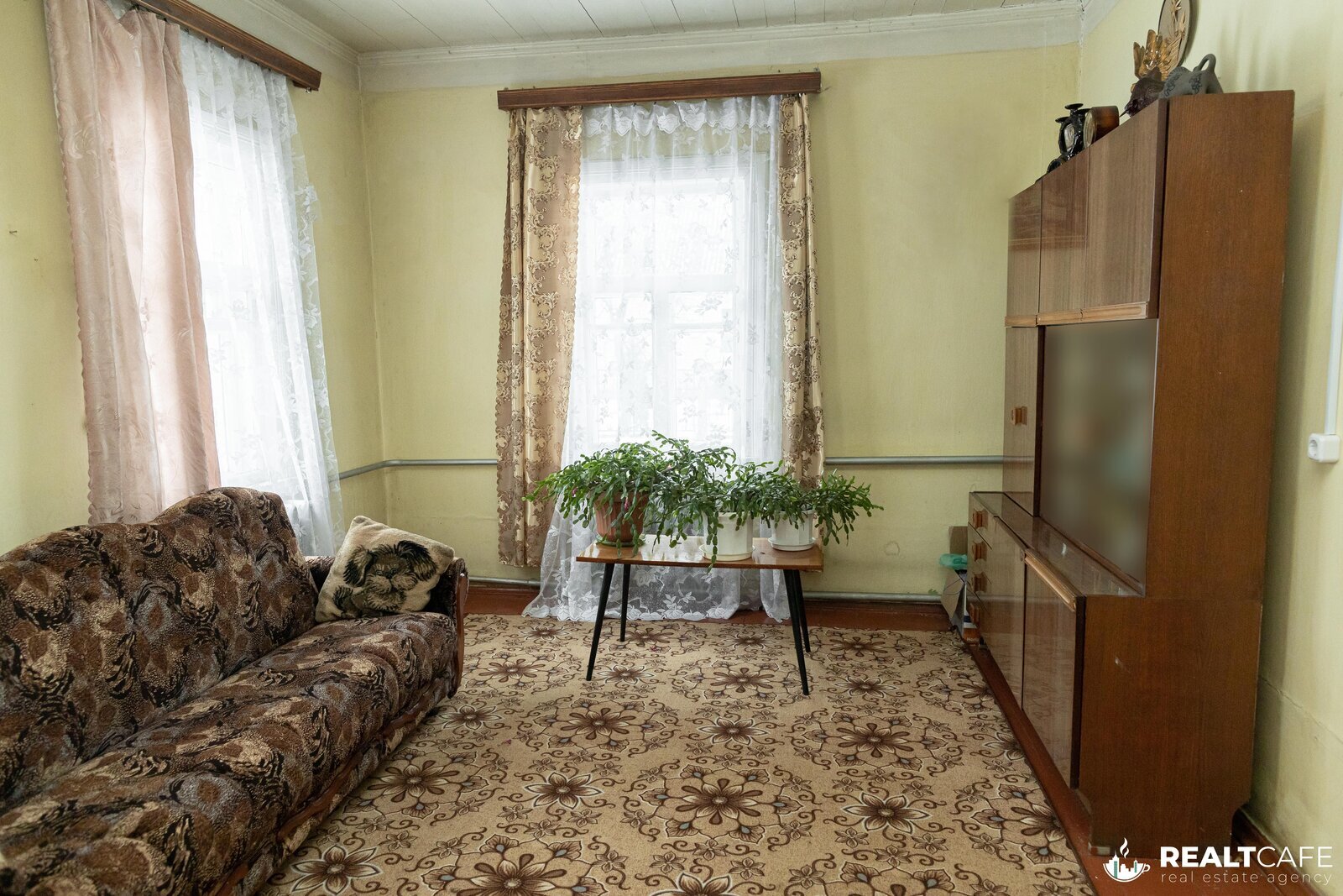 Дом бревенчатый, облицованный кирпичом, с большим земельным участком 15,5 соток, вся территория огорожена. На участке имеется сарай, подвал. Плодово-ягодные деревья, огород.