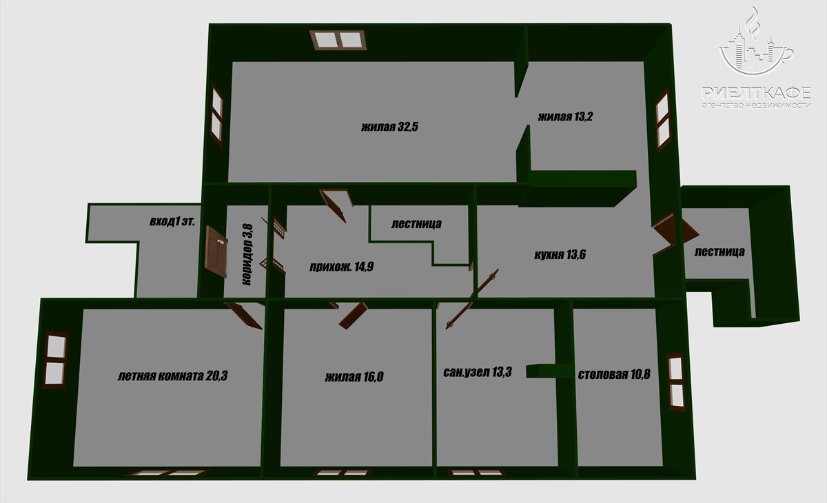 - 8 жилых комнат, 4 сан.узла,