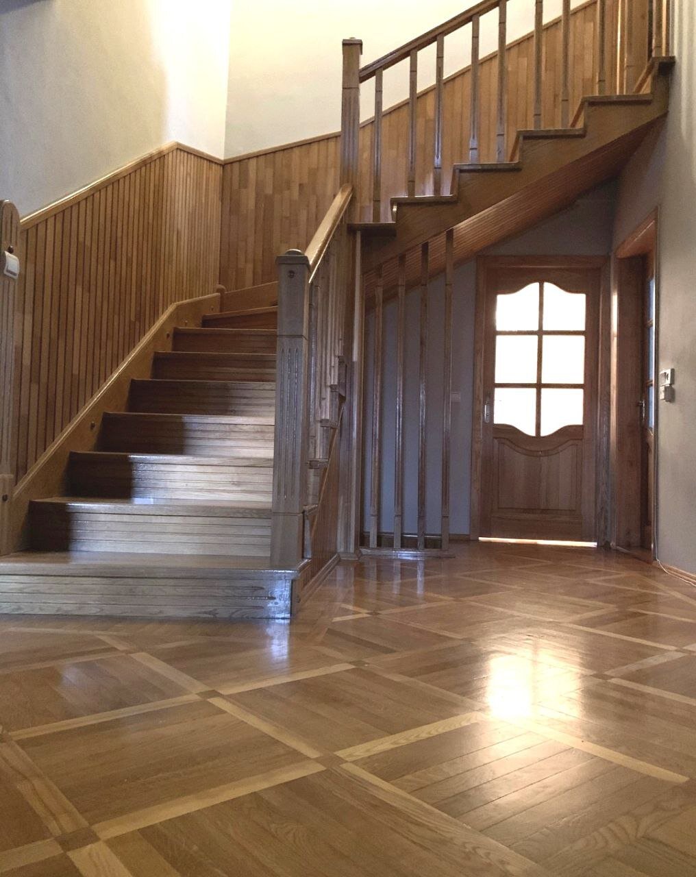 - лестница и паркет выполнены из доски дуба, межкомнатные двери-массив дуба, входная дверь металлическая,