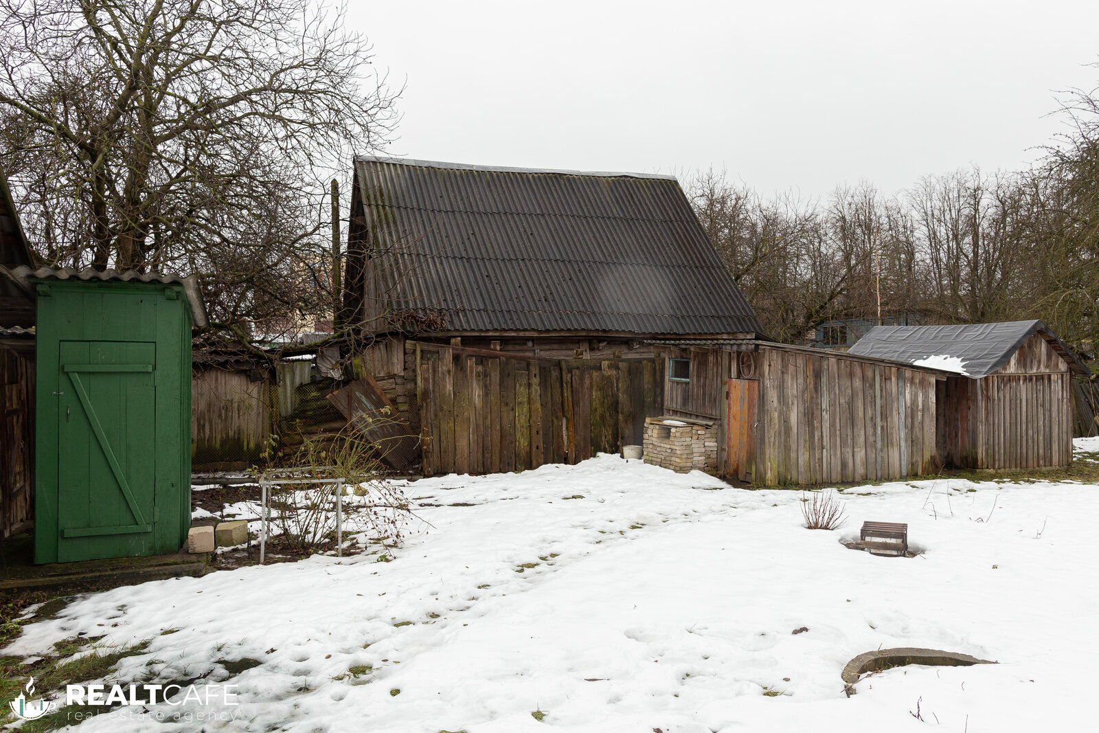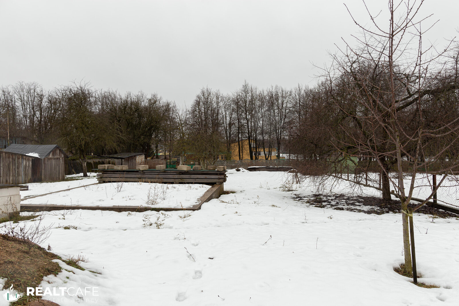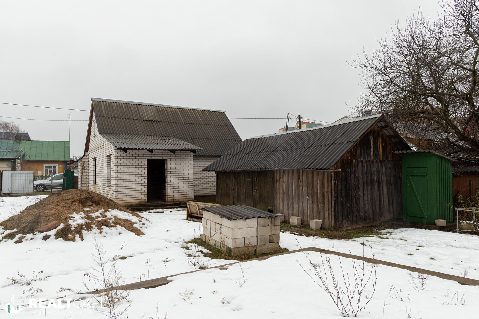 На участке расположен гараж, два сарая, залит фундамент под летнюю кухню, плодовые деревья (груша, вишня, яблоки) и кустарники (виноград).